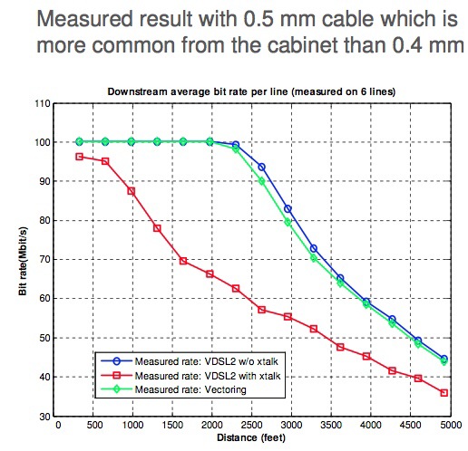 The image at the top of the post is from that page and shows performance of VDSL2 over 0.5mm copper loops commonly found in riser cables.