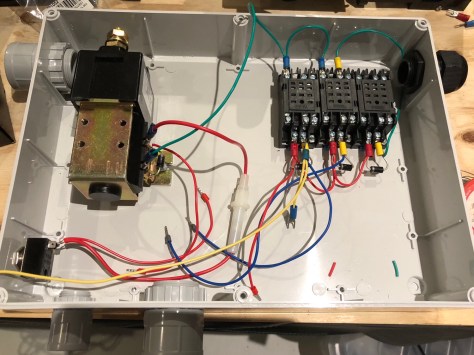 The big thing on the left is the contactor. It’s designed for forklifts. It’s rated at 48 volts 200 amps DC. It came via AliExpress.