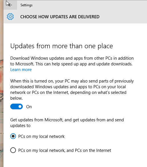 I wonder what else Windows 10 shares? Let’s look at the Update and Security screens. “Choose how updates are delivered” looks interesting.
