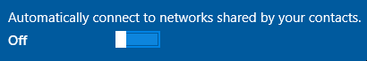 Think about that! I have the choice of automatically connecting to wifi networks my contacts share with me. It didn’t offer the choice to prevent my computer from sharing that information. Perhaps that comes later? I still haven’t seen an option to disable this insidious hole in my WiFi network security.
